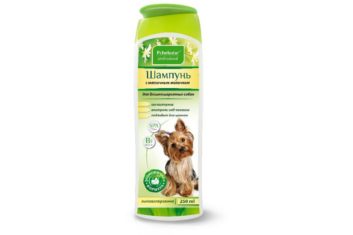 Pchelodar Шампунь с маточным молочком для длинношерстных собак (250 мл) нежно ухаживает за кожей и шерстью, имеет антисептическое, успокаивающее и увлажняющее действие.