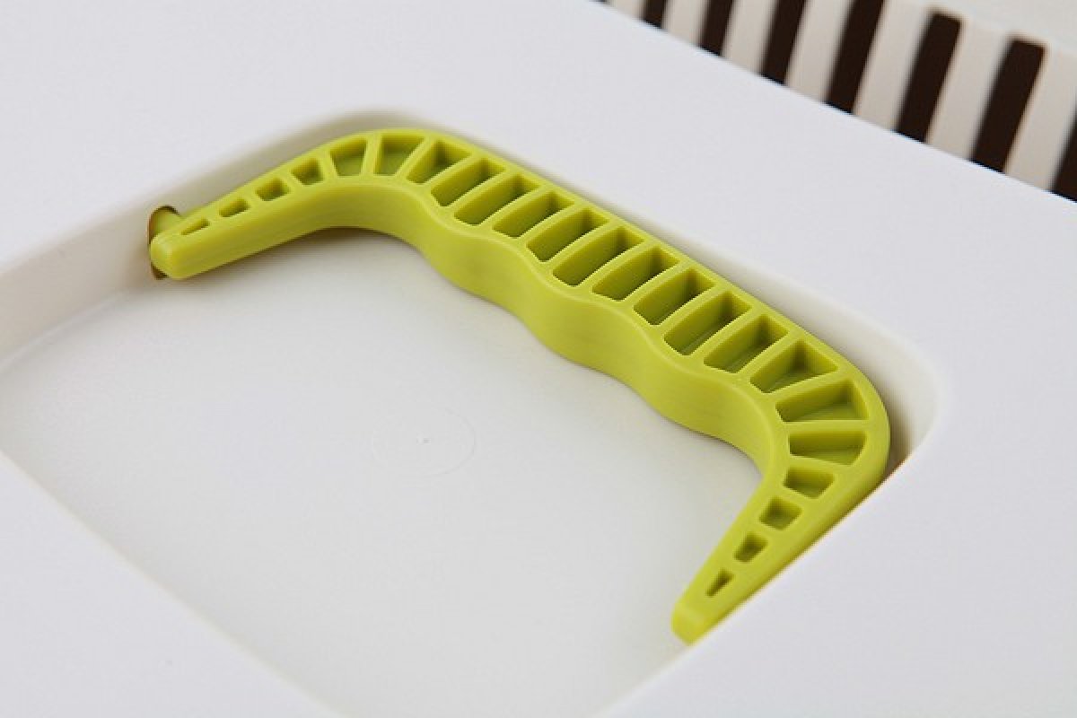 Ручка переноски спрятана в углублении и не выступает за габариты.