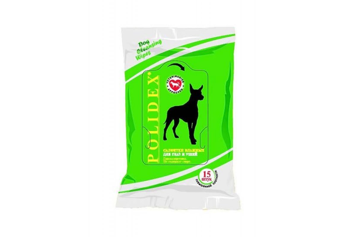 Polidex влажные салфетки бережно очищают шерсть вокруг глаз и ушные раковины щенков и взрослых собак всех пород и размеров.