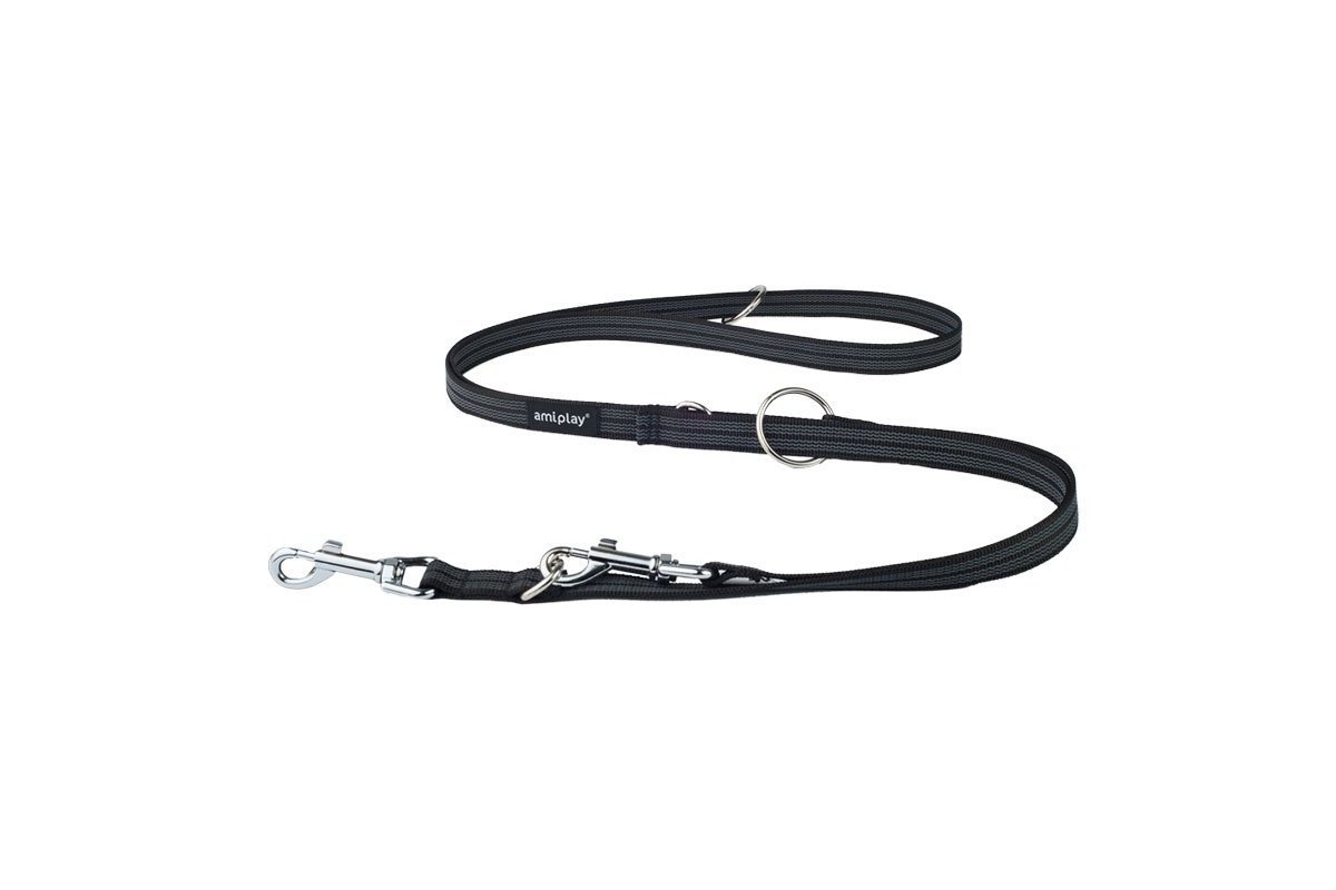 Amiplay 6 in 1 Rubber (Черный) - это качественный поводок, подходящий для выгула одной или сразу двух собак.