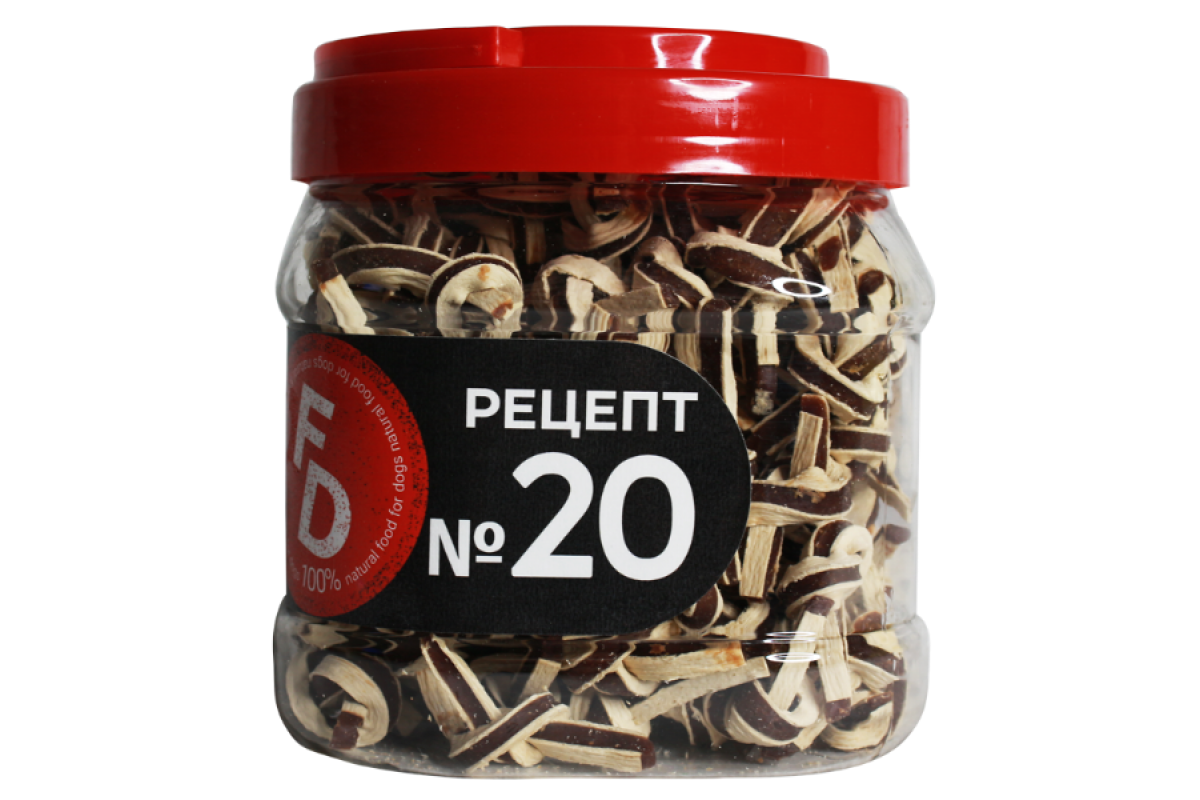 For Dogs Рецепт №20 разработан с учетом полноценного рациона собак, содержит необходимые для настроения и энергии любимого друга витамины и питательные вещества.