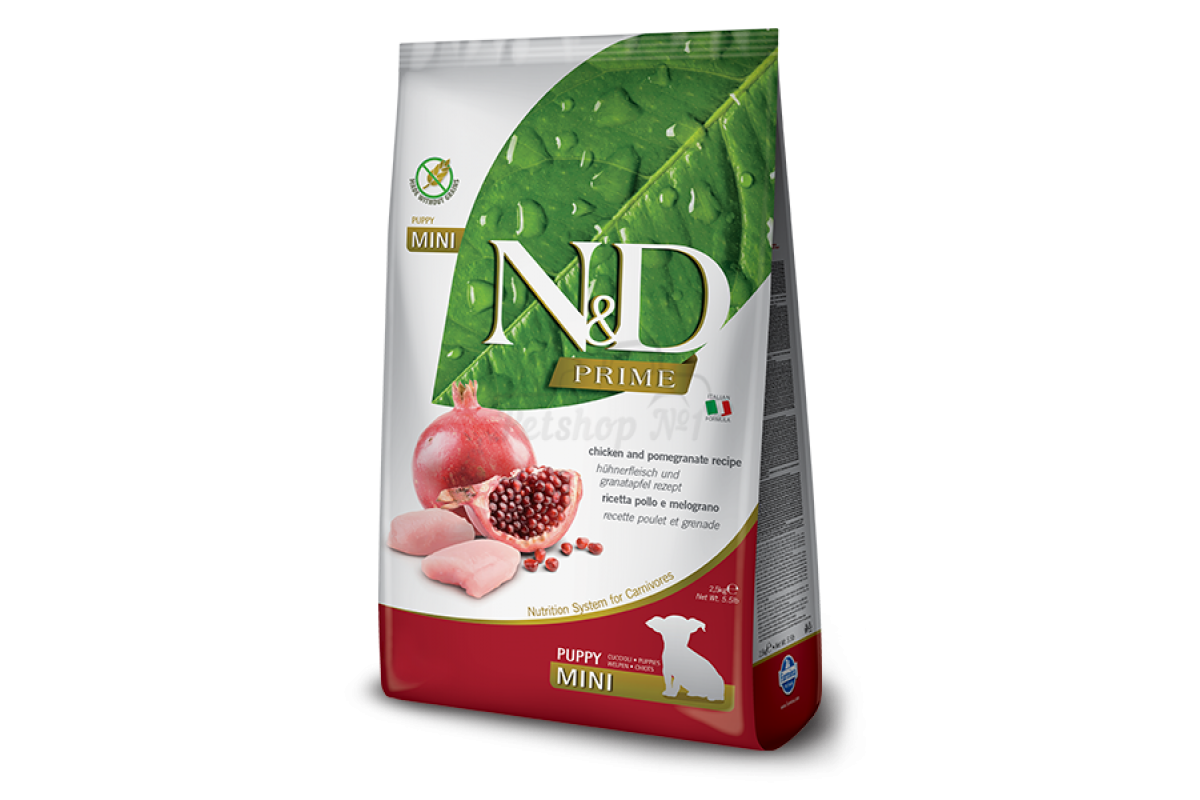 Farmina N&D GF Prime Puppy Mini (Курица и гранат) - это полноценный беззерновой корм для щенков мелких пород.