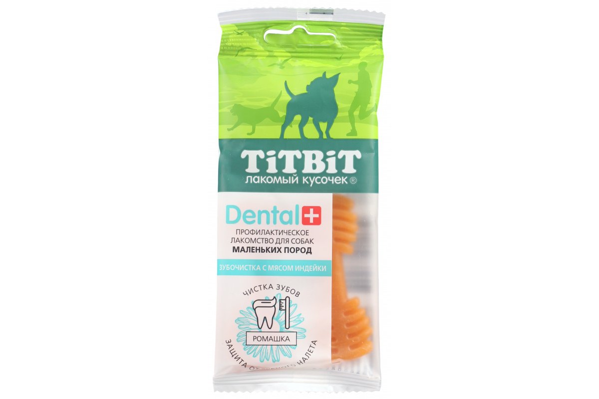 Лакомства TiTBiT Дентал + "Зубочистка" с индейкой для собак можно купить в интернет-магазине зоотоваров Дай лапу.