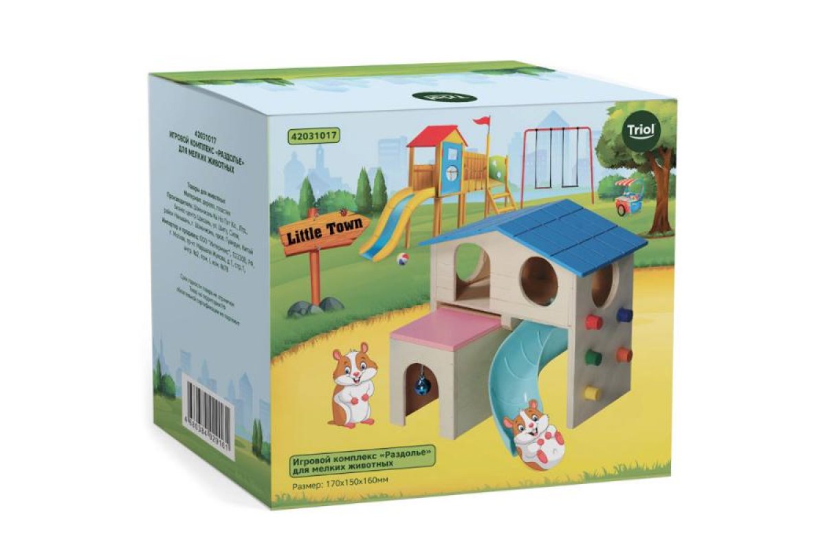 Triol Игровой комплекс LITTLE TOWN Раздолье - настоящий комплекс развлечений со всем необходимым! Досуг особенно активных животных прекрасно разнообразит возможность лазить по настоящему «скалодрому».