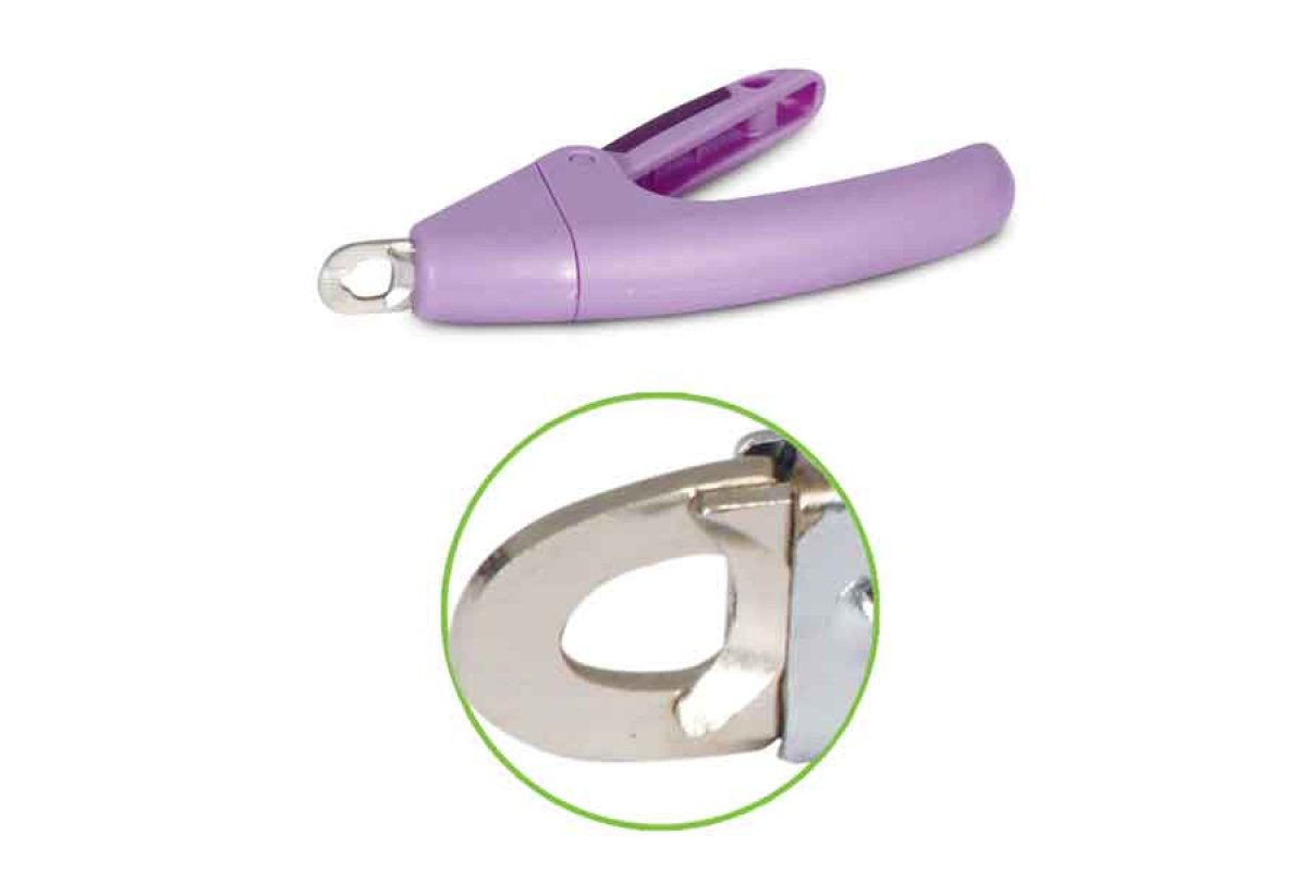 Рабочий элемент сделан из высококачественной стали, корпус выполнен из прочного цветного пластика. Он легко подрезает когти, не причиняя животному дискомфорта.