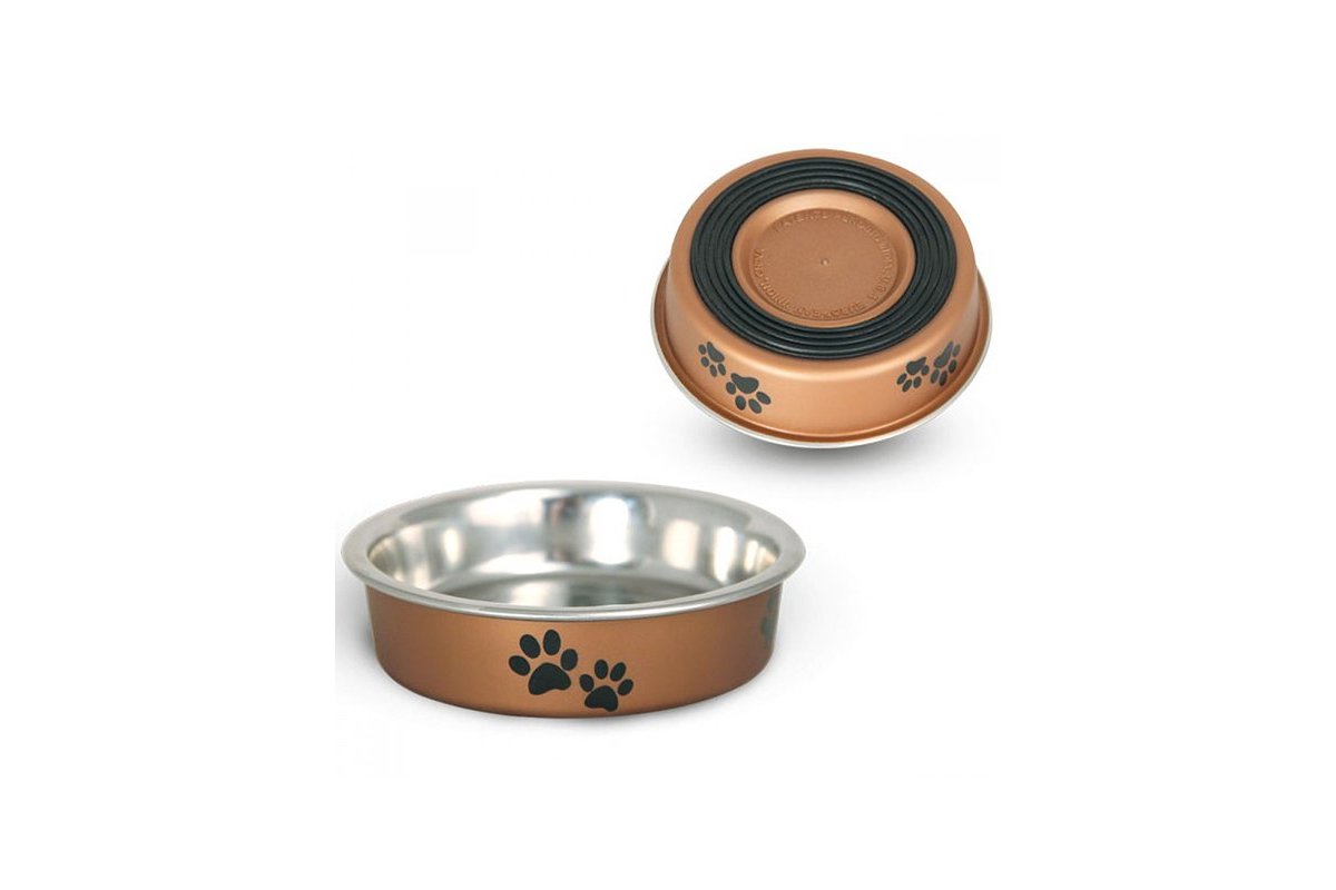 Triol Миска Лапки оранжевая - это стильная круглая миска из нержавеющей стали, подходящая для кошек и собак.