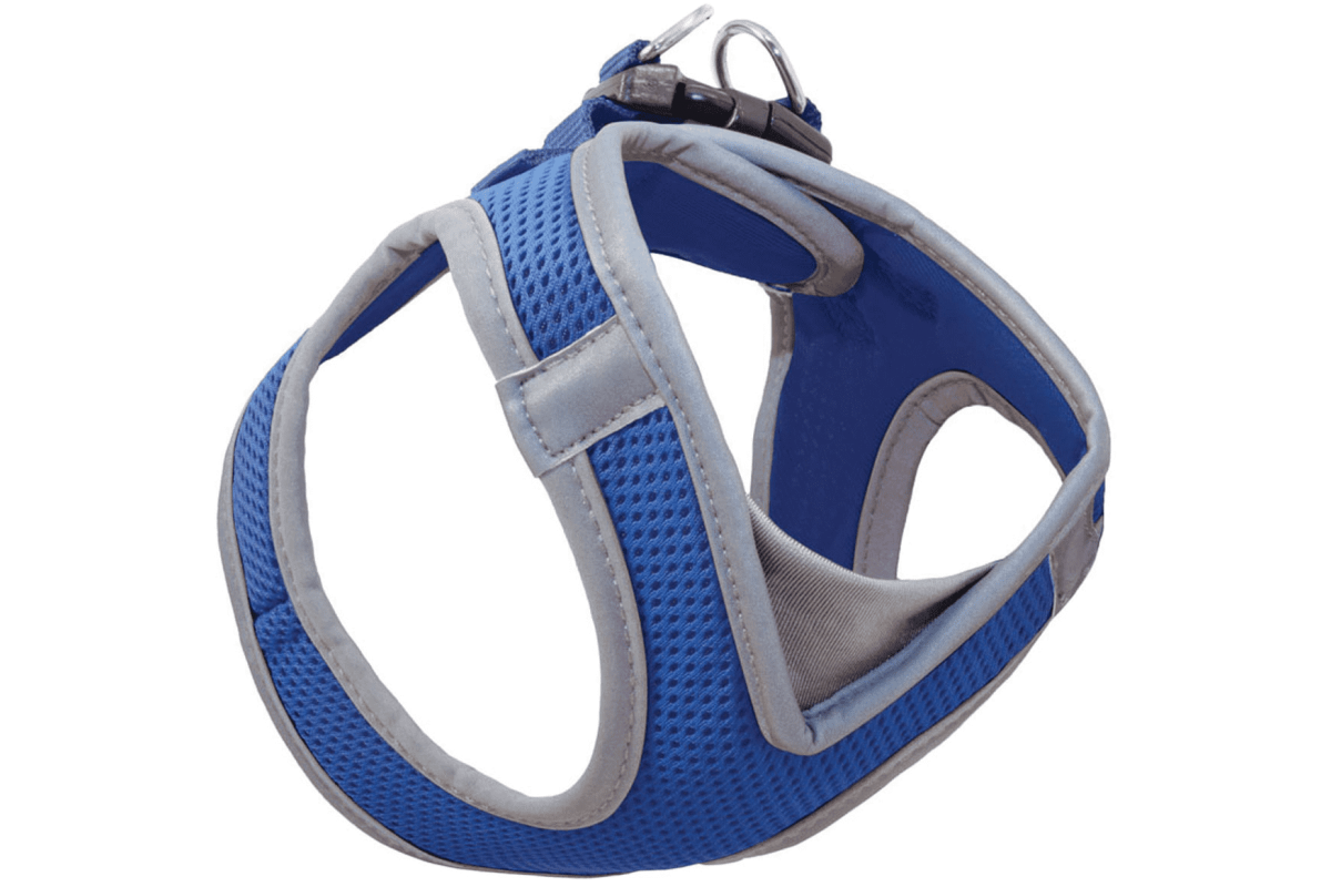 Яркий синий цвет и окантовка из светоотражающего материала делают питомца заметным не только в пасмурную погоду, но и в ночное время.