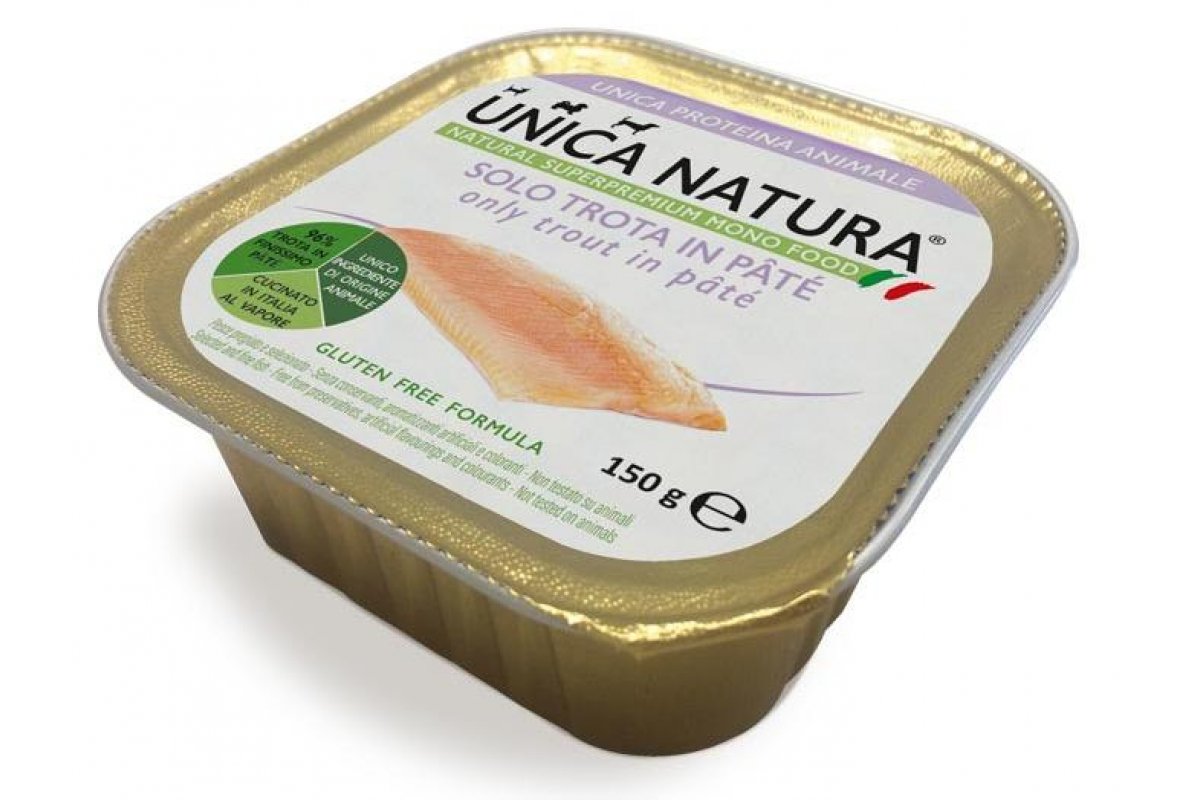 Консервы Unica Natura MONO MINI Паштет из форели для собак можно купить в интернет-магазине зоотоваров Дай лапу.