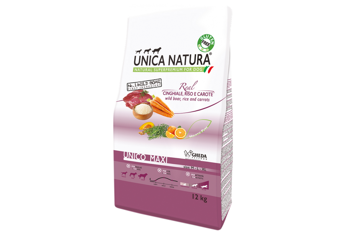 Дегидратированный животный белок (31,0%, из которого 14,5% дикий кабан), рис (14,4%), кукуруза, куриный жир, кукурузная мука, гидролизованный животный белок, сухая пульпа свеклы, сухой яблочный жом (4%), морковь (1%), дробленые тыквенные семечки (0,5%), глюкозамин.