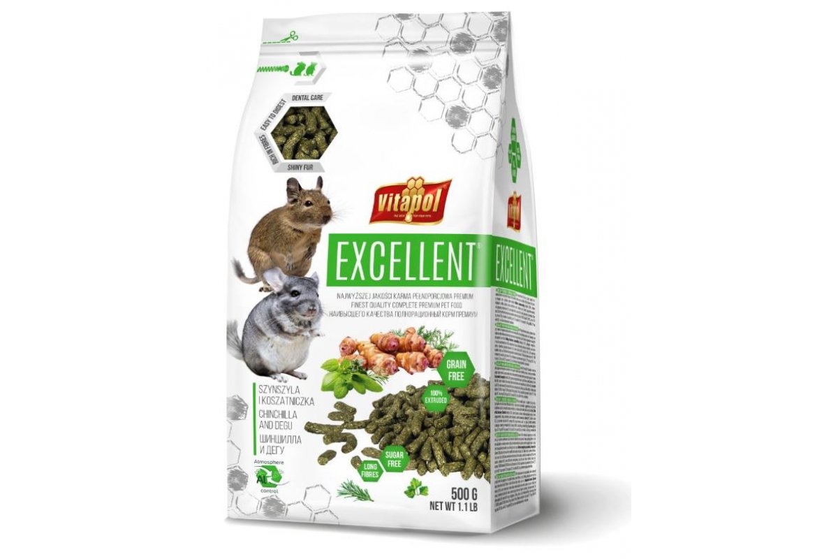 Vitapol Excellent Полнорационный корм - это полноценный корм для шиншилл и дегу.