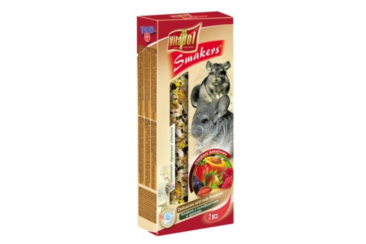 "Vitapol" Smakers - это зерновое лакомство с сухофруктами и орехами для шиншилл.