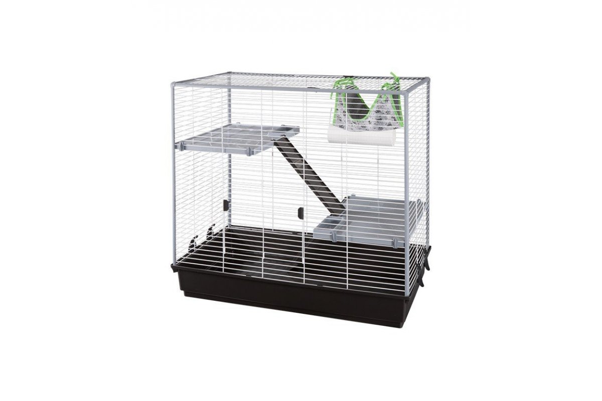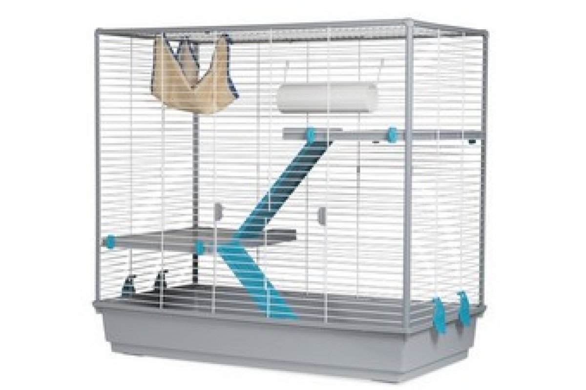 Что нужно для комфортной жизни хорька в домашних условиях? Вкусная и полезная еда, правильный уход и уютная клетка. Последнее очень важно, потому как именно там питомец будет проводить большее количество времени. Voltrega HURON 266B оборудована всем самым необходимым для комфорта питомца. Внутри установлены две платформы, соединенные удобной лестницей, где можно поиграть, полазать и отдохнуть. В этих целях можно использовать специальную трубу на боковой стенке клетки, а также уютный гамачок, подвешенный в самом верху! Что ещё нужно для счастья?