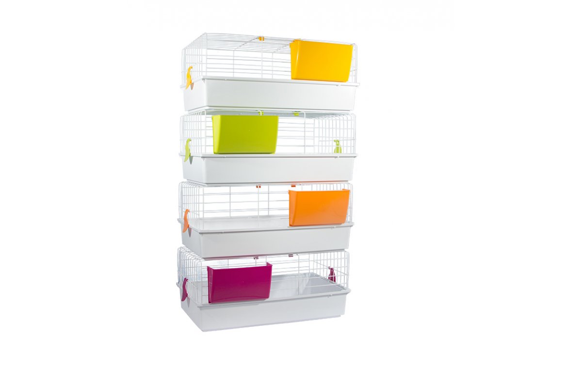 Вы можете выбрать нужный вам размер клетки. В каждой из них есть глубокий отсоединяющийся поддон, бокс для загрузки еды и дверца, расположенная на верхней стенке клетки.