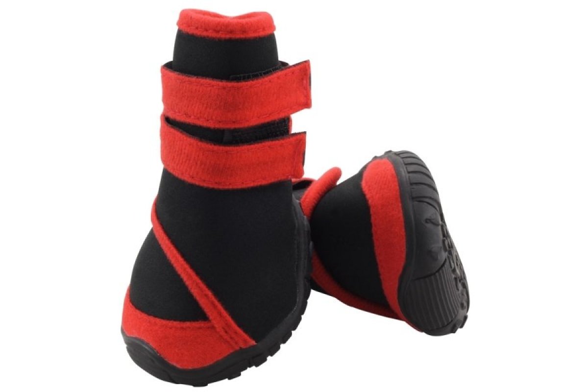 YXS134 Ботинки для собак черные с красным для собак